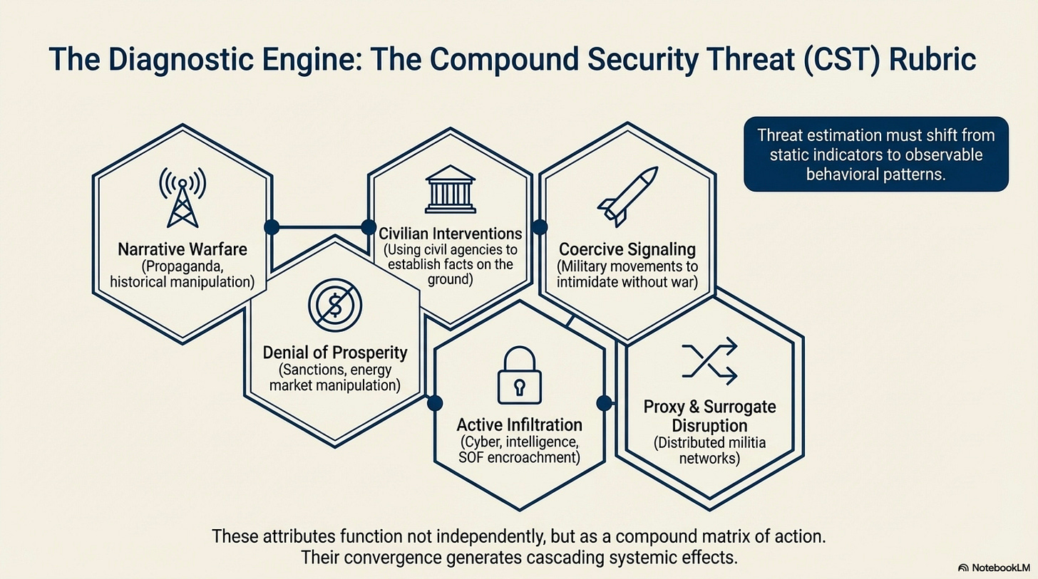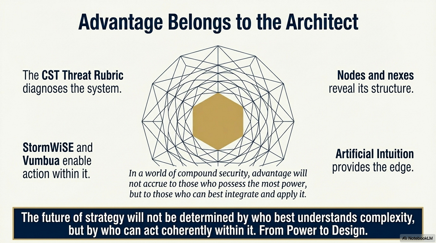 What distinguishes this new form of competition is not merely its breadth, but its structure. The defining characteristic of compound security is interaction. Actions taken in one domain do not remain confined; they propagate, intersect, and amplify across others. Economic coercion reshapes political legitimacy. Cyber intrusions enable proxy operations. Narrative campaigns alter the meaning of military signaling. Each domain becomes both cause and effect.