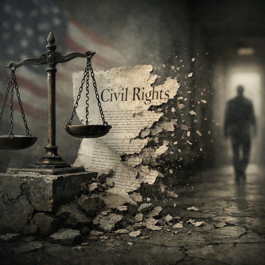 Jim Crow emerged not through the repeal of rights, but through the collapse of the institutions designed to enforce them.