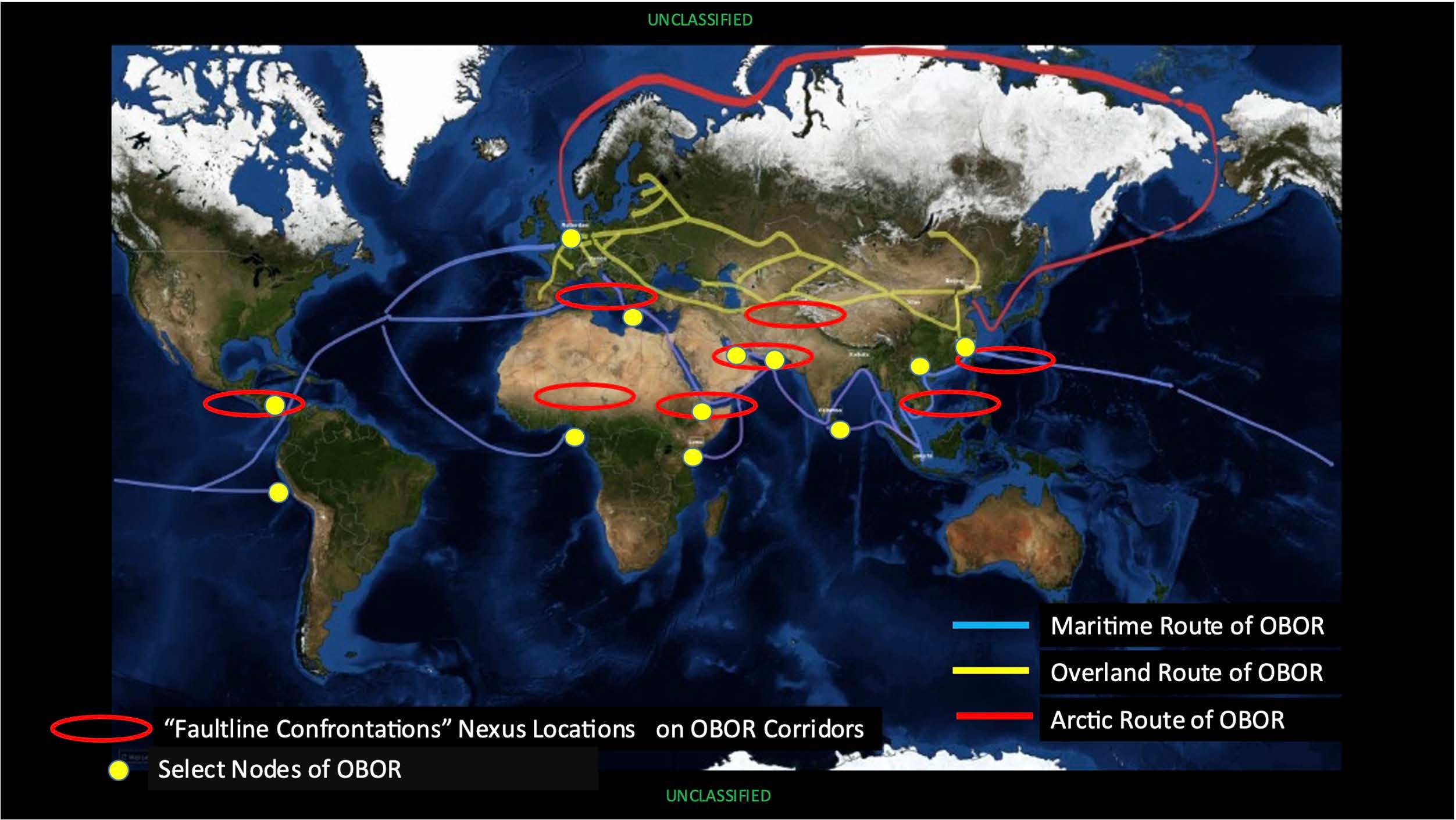 Figure. Geostrategic “Faultline Confrontations” Key ‘Nexes’ and Xi’s China’s Belt & Road Initiative Key ‘Nodes’